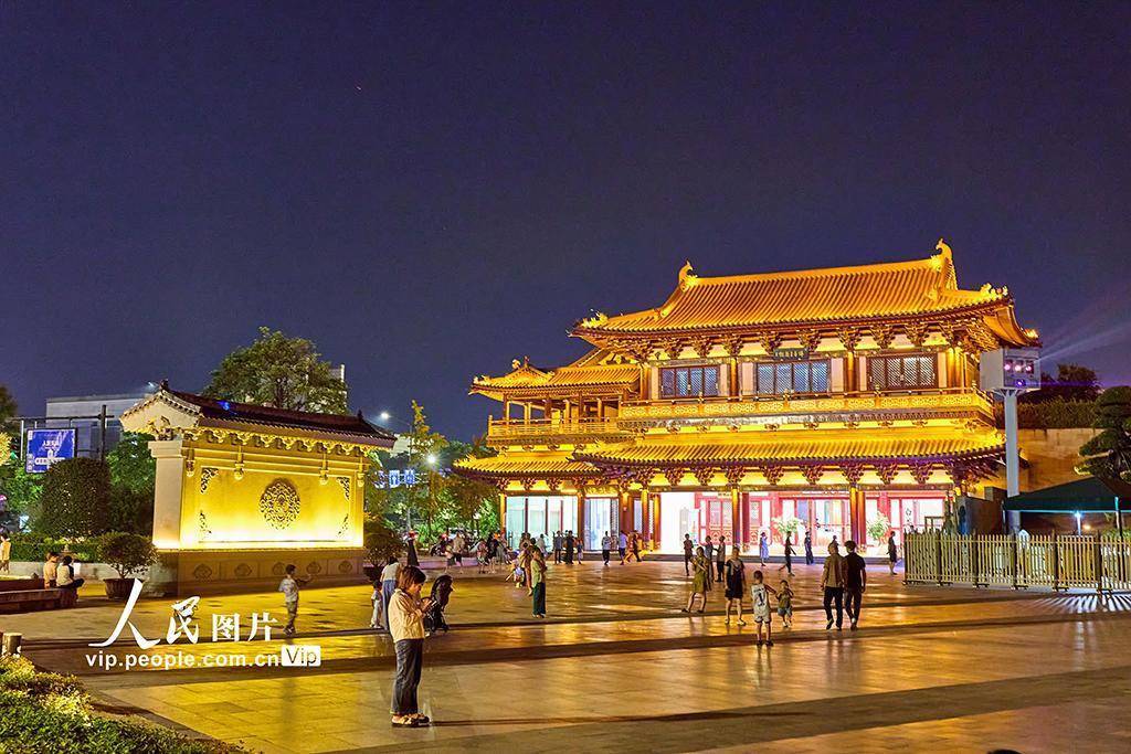 2025年10月12日晚,浙江金华,游客在古子城景区游览。